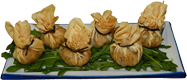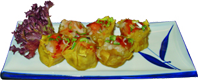 109. Wan Tan 6 frittierte Garnelen, Krebsfleischfüllung und Sesamsauce