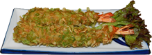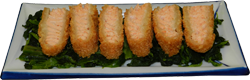15. Ebi Hana Tempura 2 gemantelte, fritierte Garnelen mit grünem Reis, Süße-Chili-Sauce
