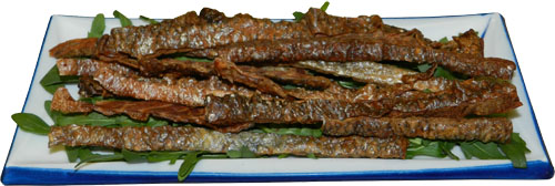 16. Salmonskin Salat gegrillte Lachshaut, Rucola mit Sesamsauce