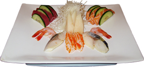 Reistüte mit Thunfisch, Avocado, Gurke, Kaviar